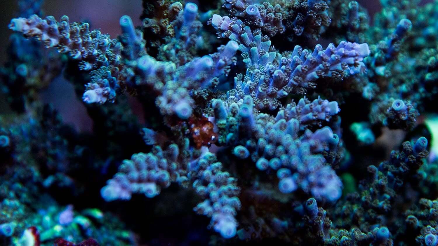 Non Identified blue accro, we acquired as a brown frag in 2015, it grew into a beautiful deep blue color and has gained stability through fragging and regrowing.
